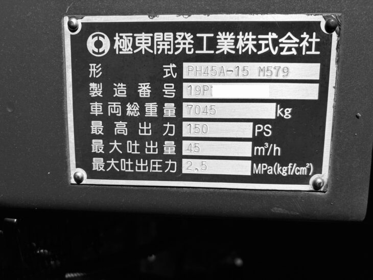 極東開発工業製2t(2トン)スクイズ コンクリートポンプ車中古車両入庫致しました。